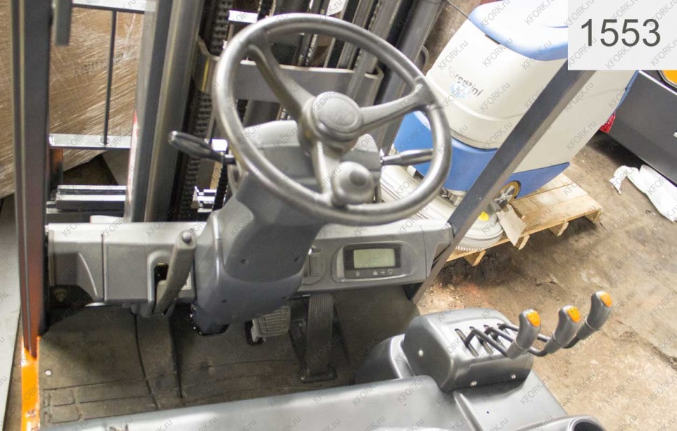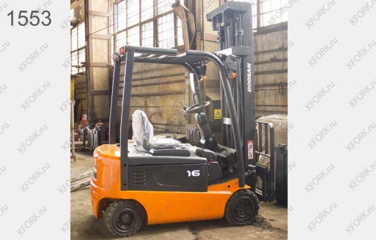 Электрический погрузчик Doosan Б/У с интентарным номером 1553 2012 года выпуска. Состояние - Хорошее. Имеет грузоподъемность 1600 кг. Гарантия: 1 мес или 200 м/час.